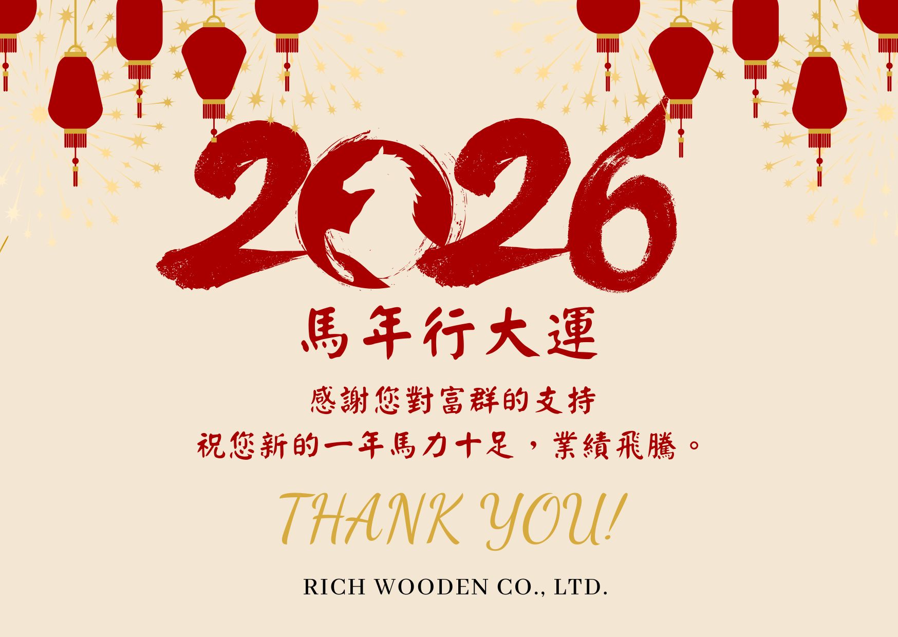 敬告您,本公司春節年假期間 : 2026/02/14 ~ 2026/02/22