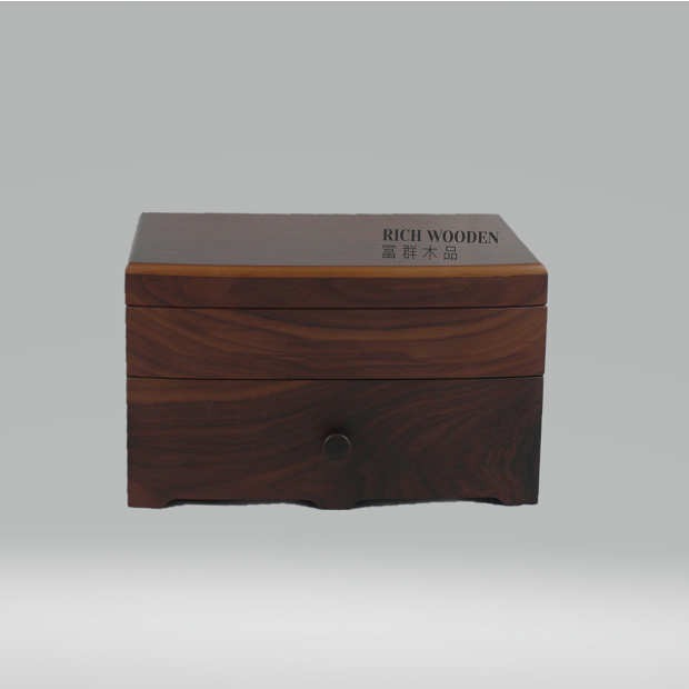 產品介紹 : 採用胡桃木製作,表面內外一般噴漆處理,掀蓋設計及單抽屜內貼絨布,整組胡桃木提升收藏盒質感。