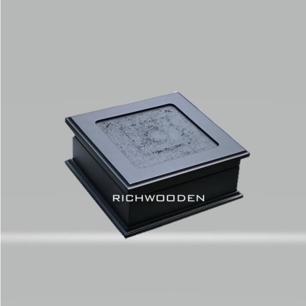產品介紹 : 採用MDF製作,表面內外一般噴漆處理/黑色平光霧面漆,掀蓋設計搭配彈簧式後鈕,無需再組裝前扣來破壞整組性的美感。內裏採用高級黑色皮革貼覆,外蓋凹槽處可貼銘板(可另外設計銘版),讓整體更佳有特色。